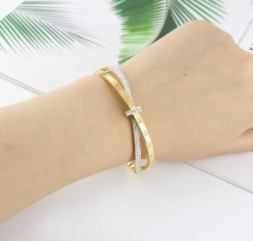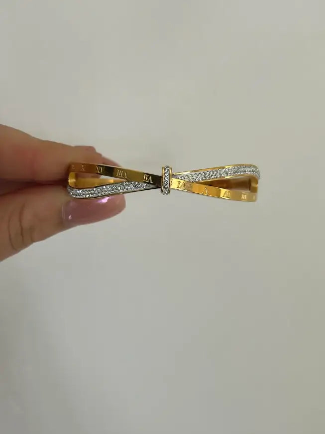 Inspired by eternity, designed for brilliance. The Eternal Glow Bangle blends classic Roman numerals with dazzling stones, creating a striking balance of tradition and glamour. A must-have for those who love timeless elegance.