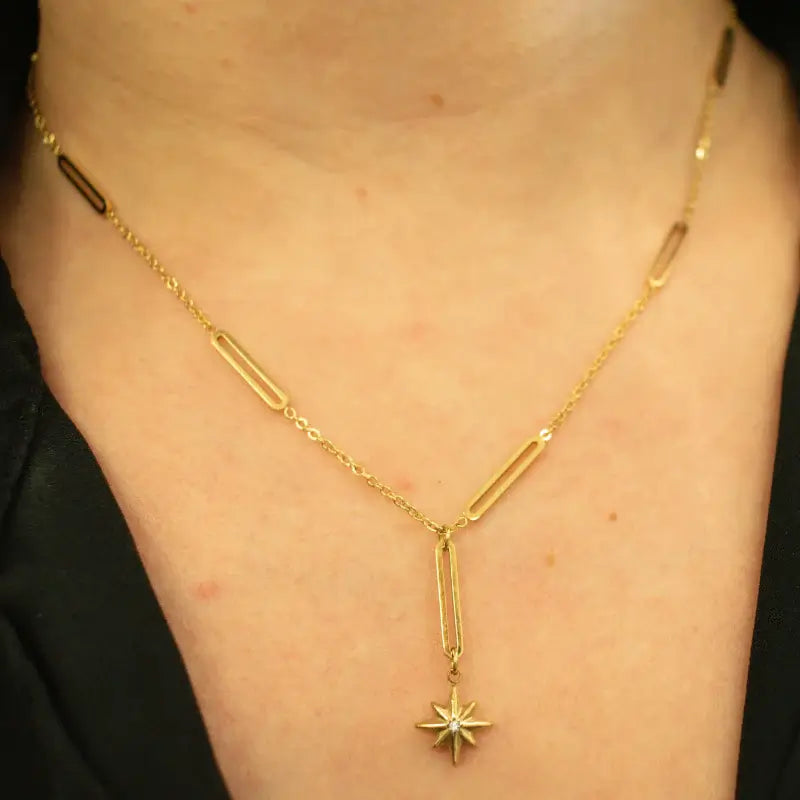 The adjustable North Star Necklace adds charm and inspiration to any neckline.