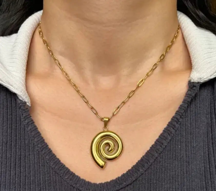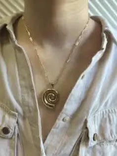 This necklace features a twisted circle pendant for a chic and elegant touch. Its minimalist design allows for easy layering and versatility. Made hypoallergenic for daily wear or special occasions. Elevate your style with this modern twist on a classic pendant.