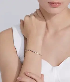 A stunning blend of elegance and brilliance, this gold bracelet features radiant baguette-cut stones that catch the light beautifully. Designed for a timeless and sophisticated look, it's perfect for elevating any outfit or making a statement on special occasions.