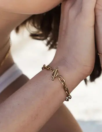 Elevate your style with our Thick Toggle Chain Bracelet. Chunky chain, stylish clasp, and durable construction create a modern yet timeless look. Perfect for any event. Make a statement.