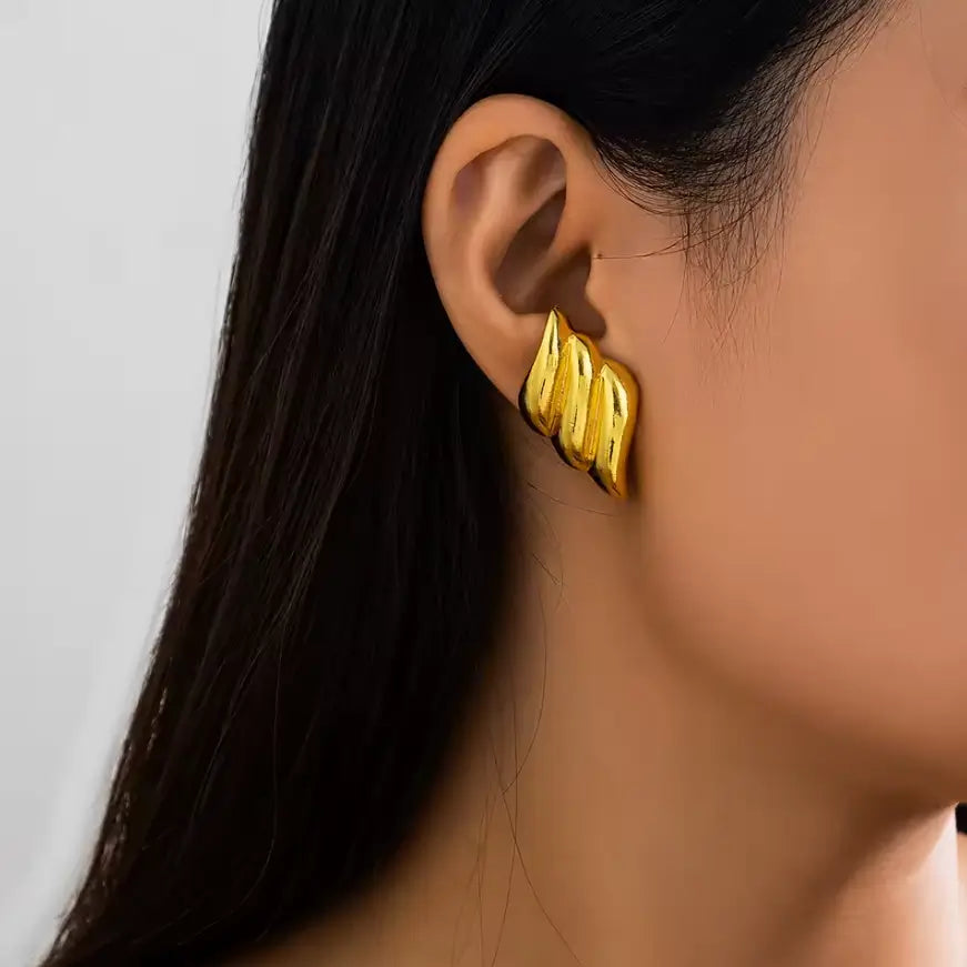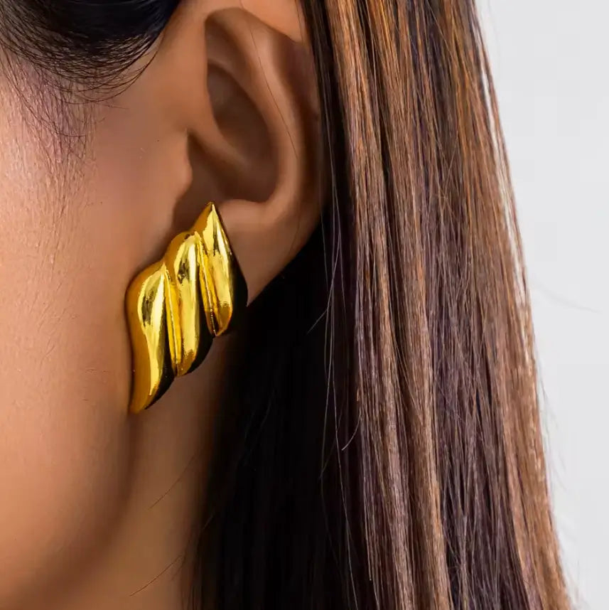 Embrace the elegance of flight with the Golden Wing Studs, a tribute to freedom, grace, and bold sophistication. Their sculpted gold form mimics the fluid motion of feathers, exuding a radiant glow with every turn. Designed for those who dare to soar, these earrings add a touch of ethereal charm to any look—timeless, powerful, and effortlessly captivating.